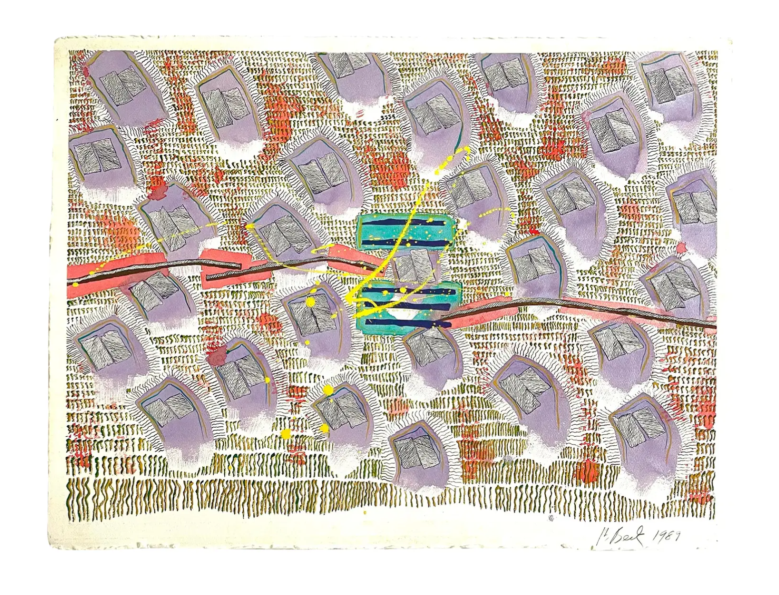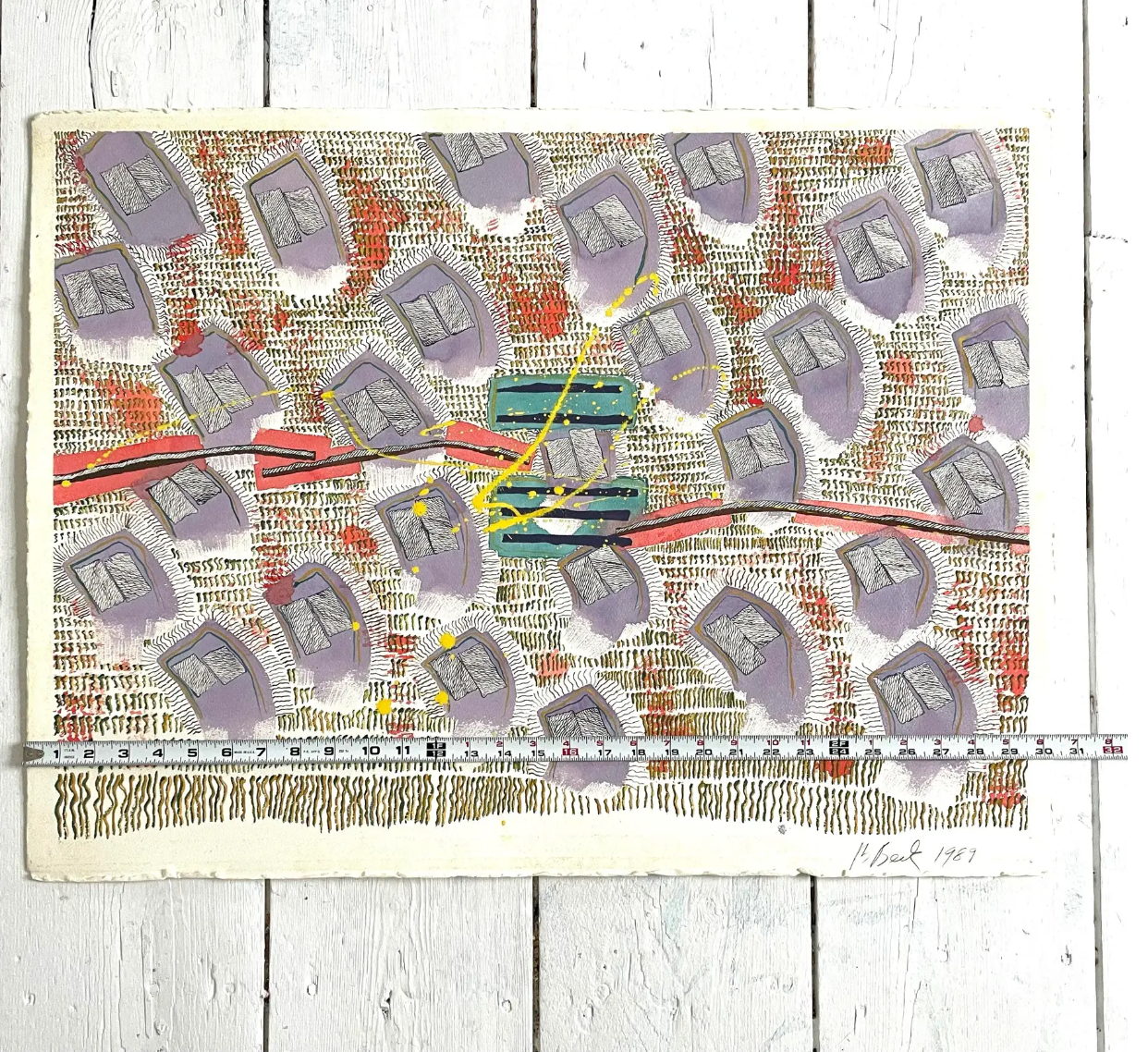 Barbara Beck 1989 Abstract Acrylic Painting on Paper