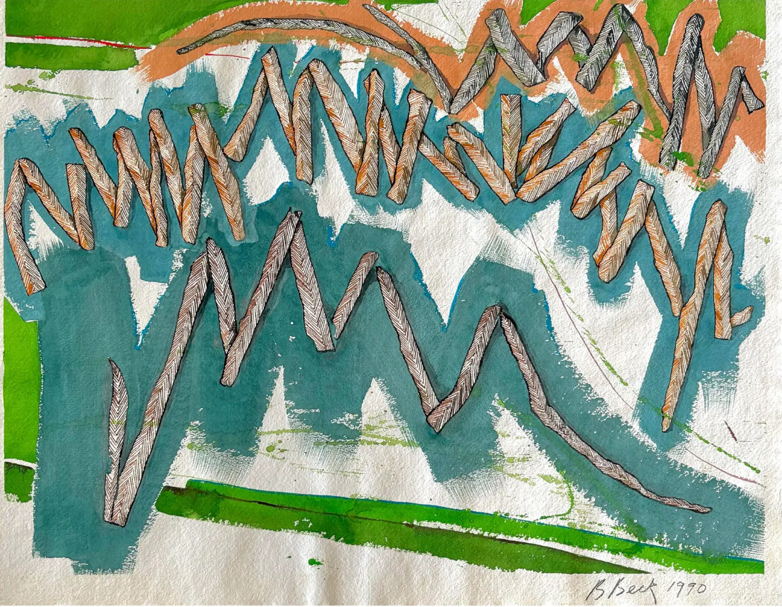Barbara Beck 1990 Abstract Watercolor Painting on Paper
