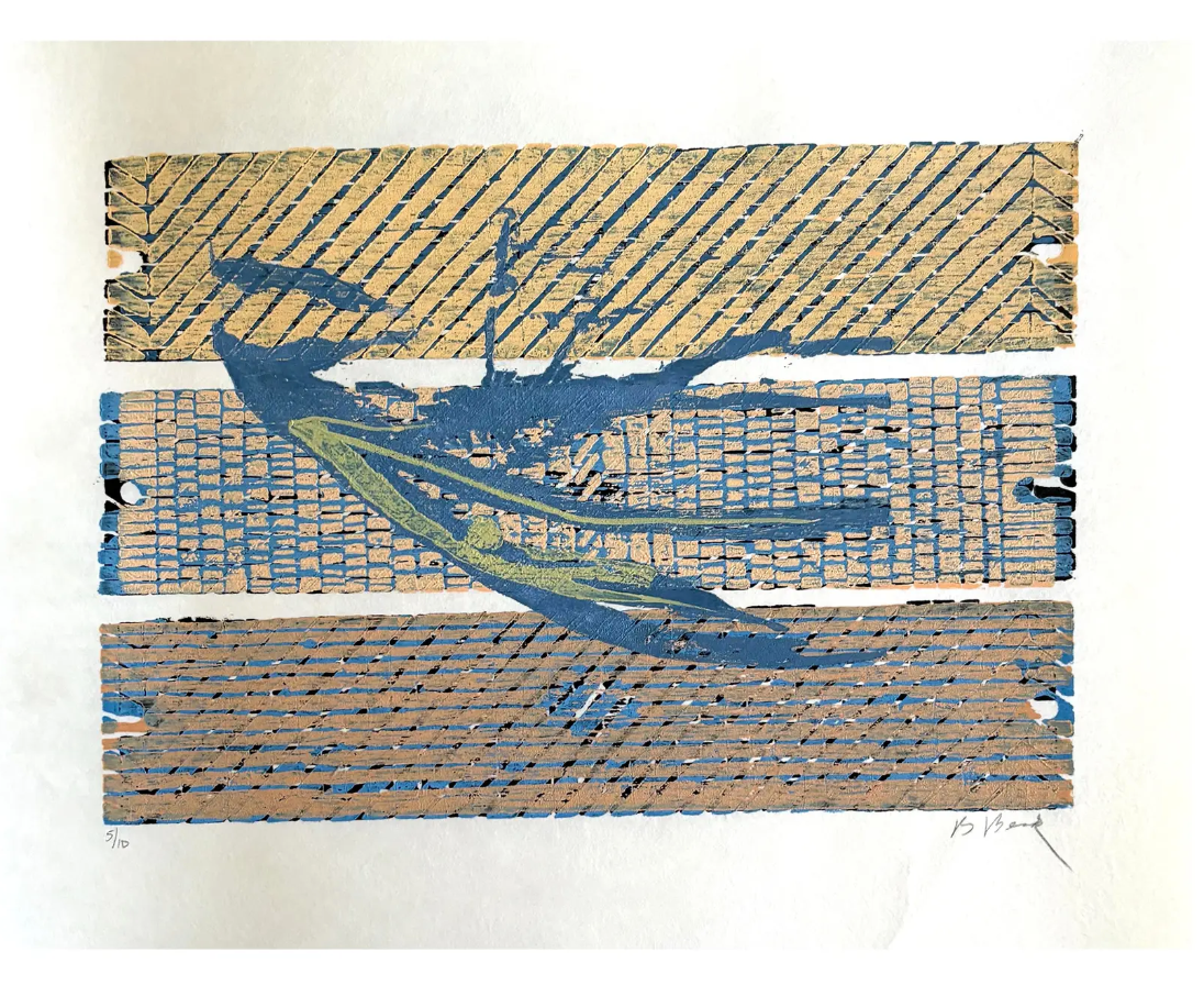 Barbara Beck Abstract Mid Century Modern Woodblock Print on Paper