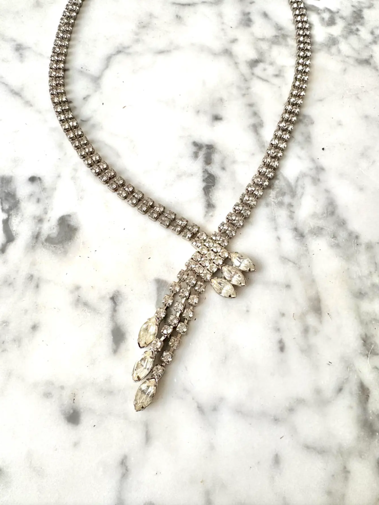 18.5" Vintage Arte Deco Asymmetrical Rhinestone Necklace