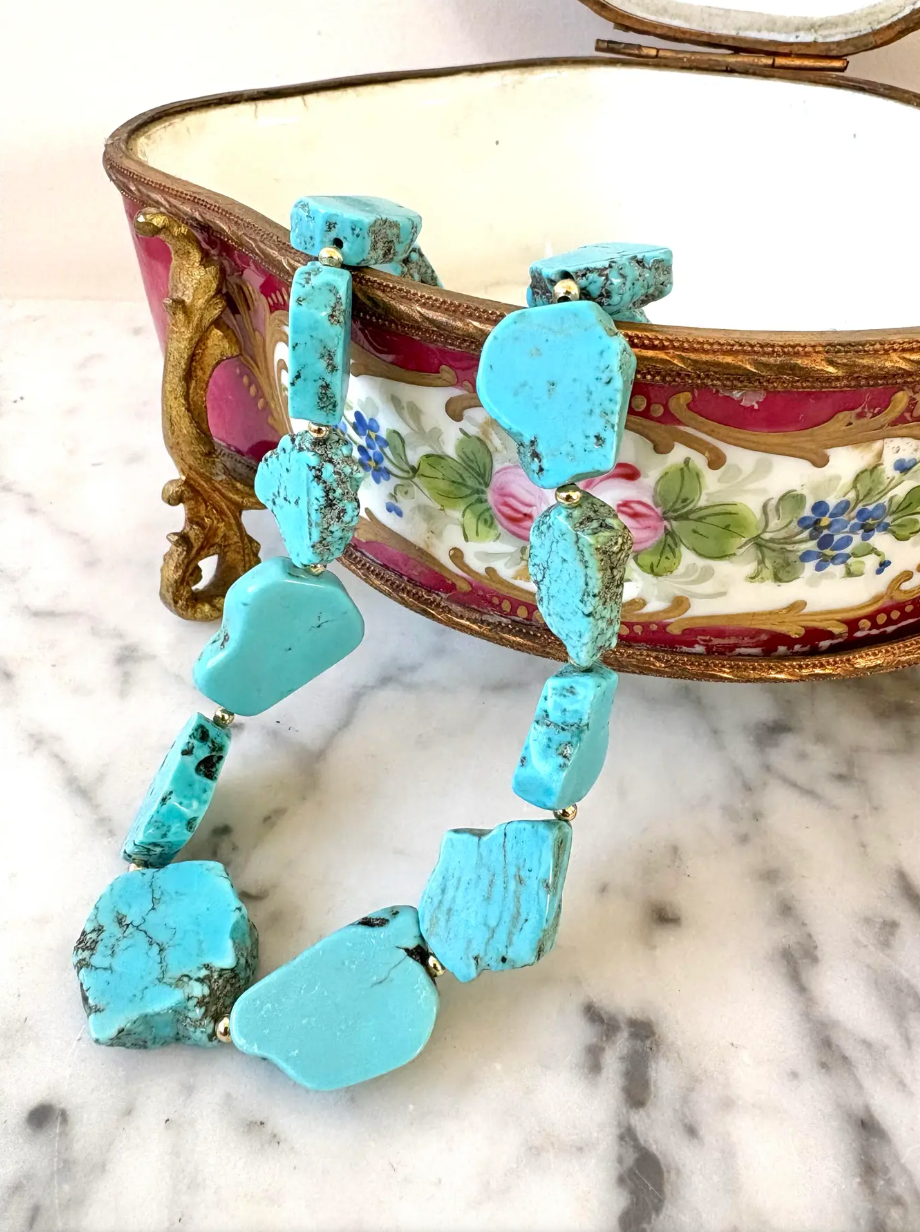 18" Natural Turquoise Beaded Necklace With and Gold Tone Spacers and Clasp - Designed by Matthew Izzo