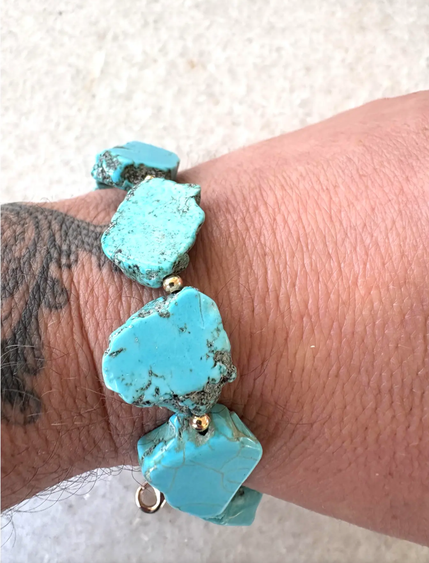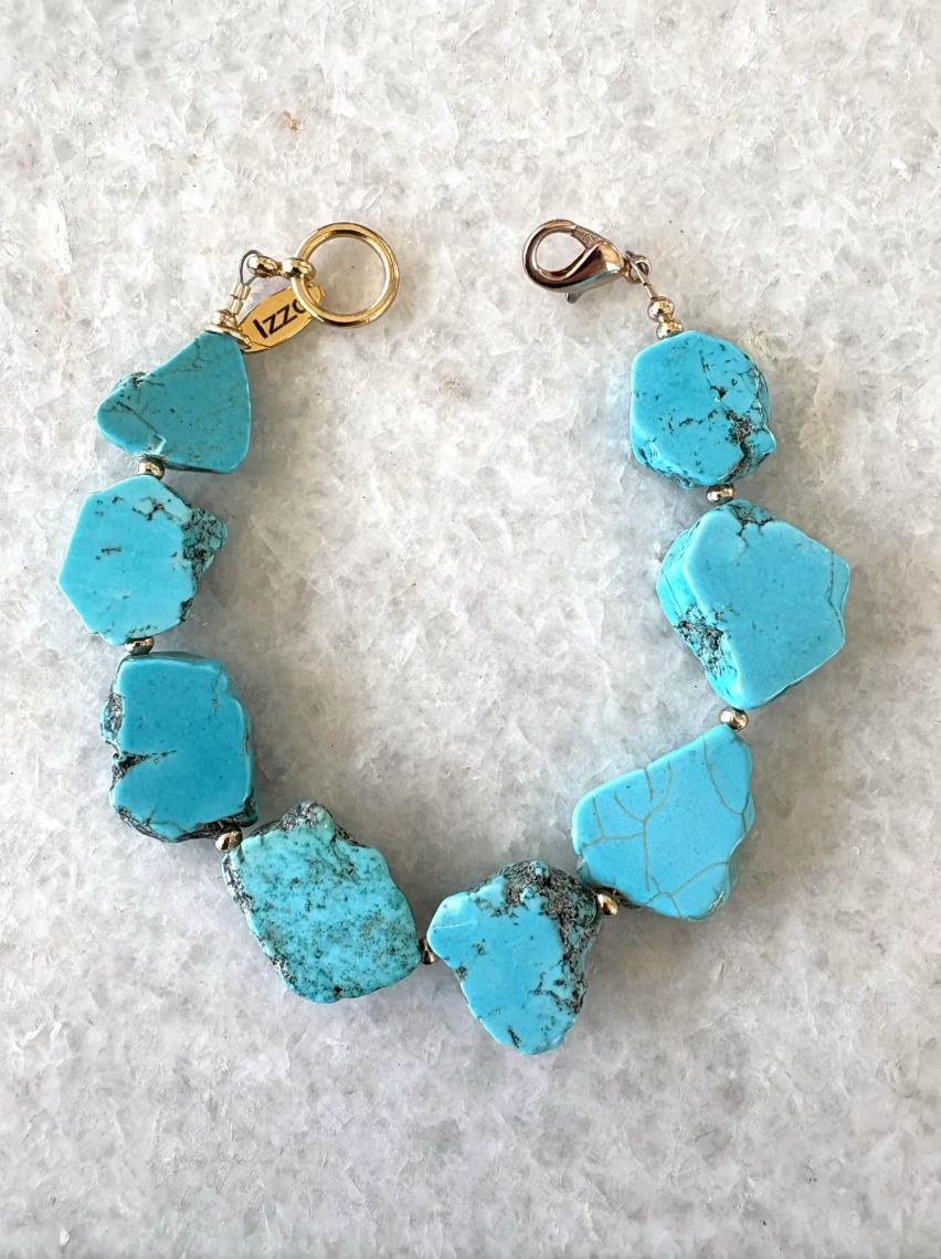 Natural Sliced Turquoise and Gold Tone Bracelet Designed by Matthew Izzo