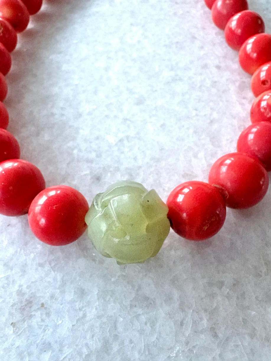 19" Coral and Carved Jade Beaded Necklace - 2025 S/S Collection by Matthew Izzo