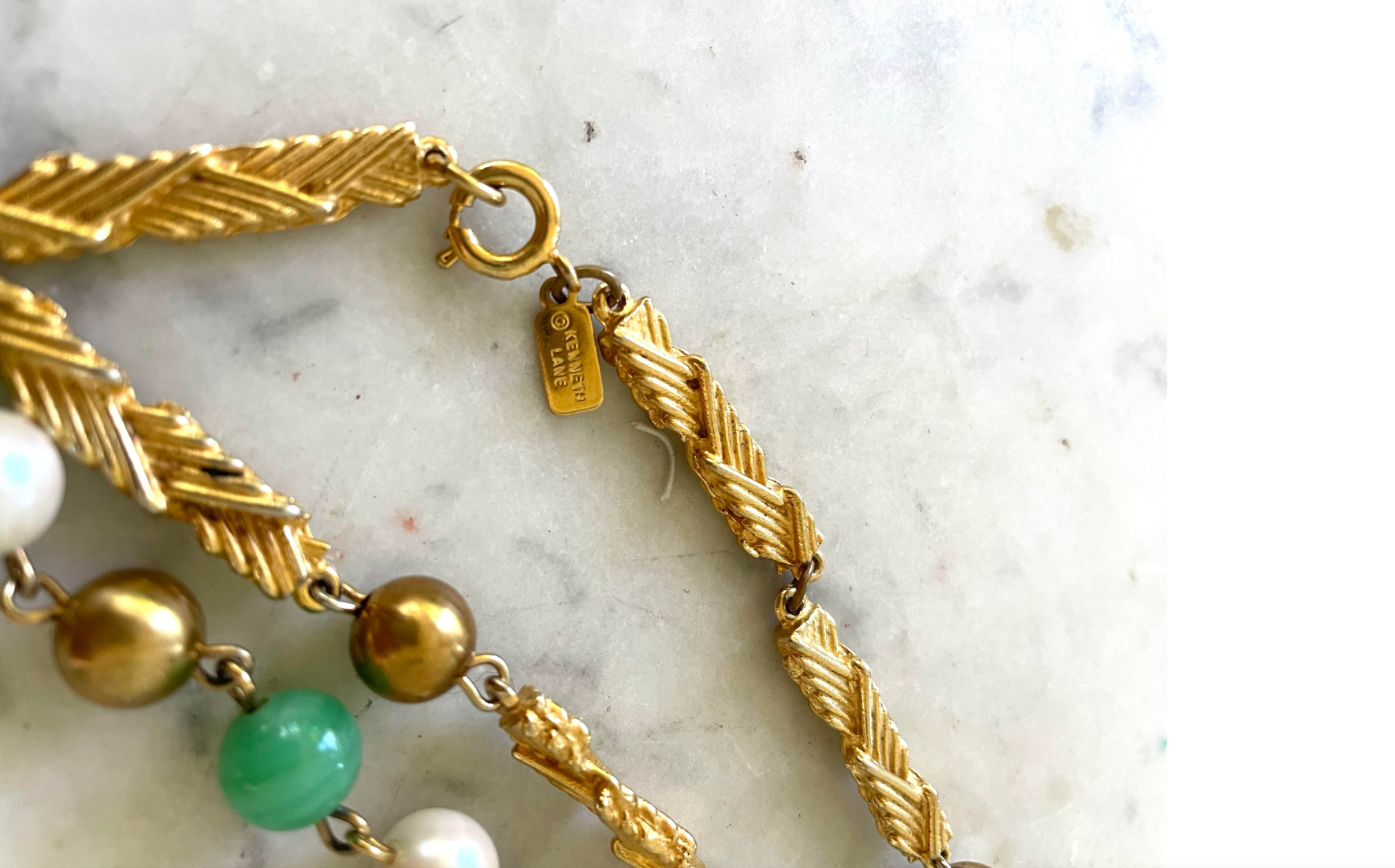 Vintage Kenneth Lane Pearl & Jade Necklace
