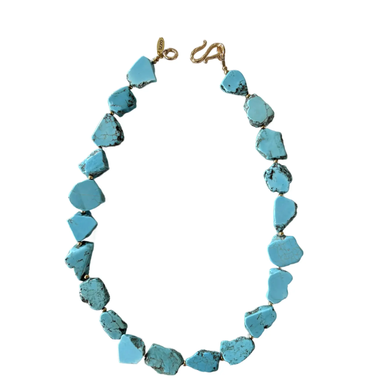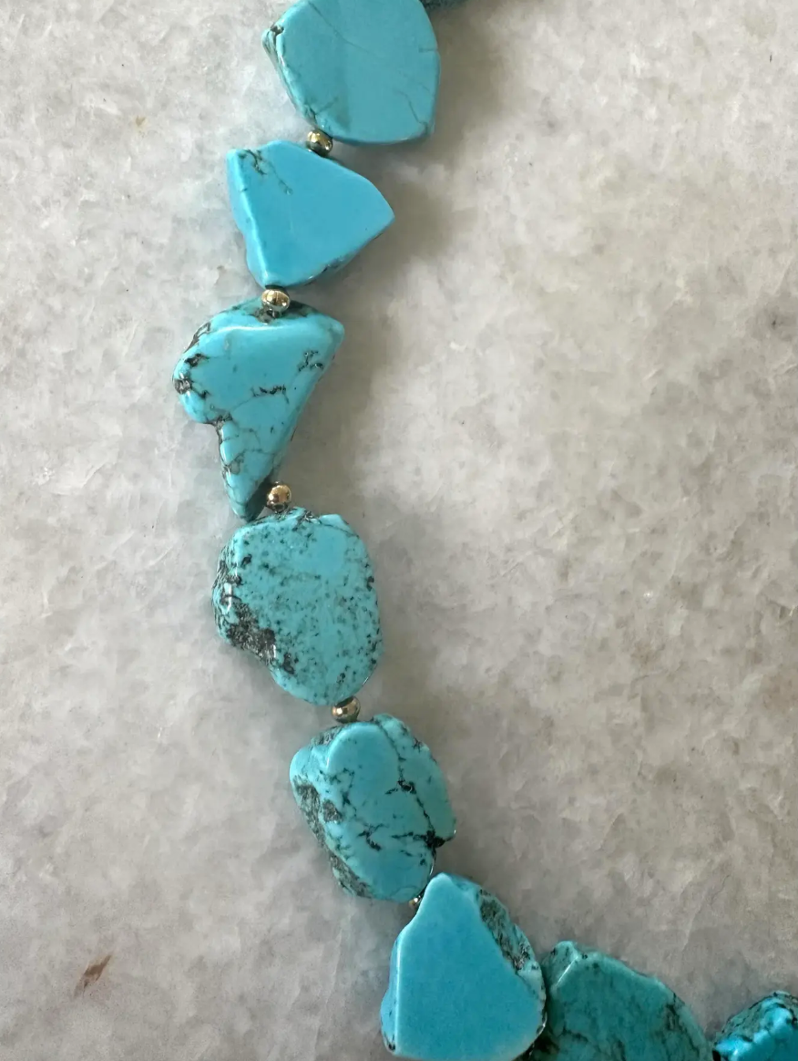 Sliced Turquoise Beaded Necklace With Gold Tone Clasp - Designed by Matthew Izzo