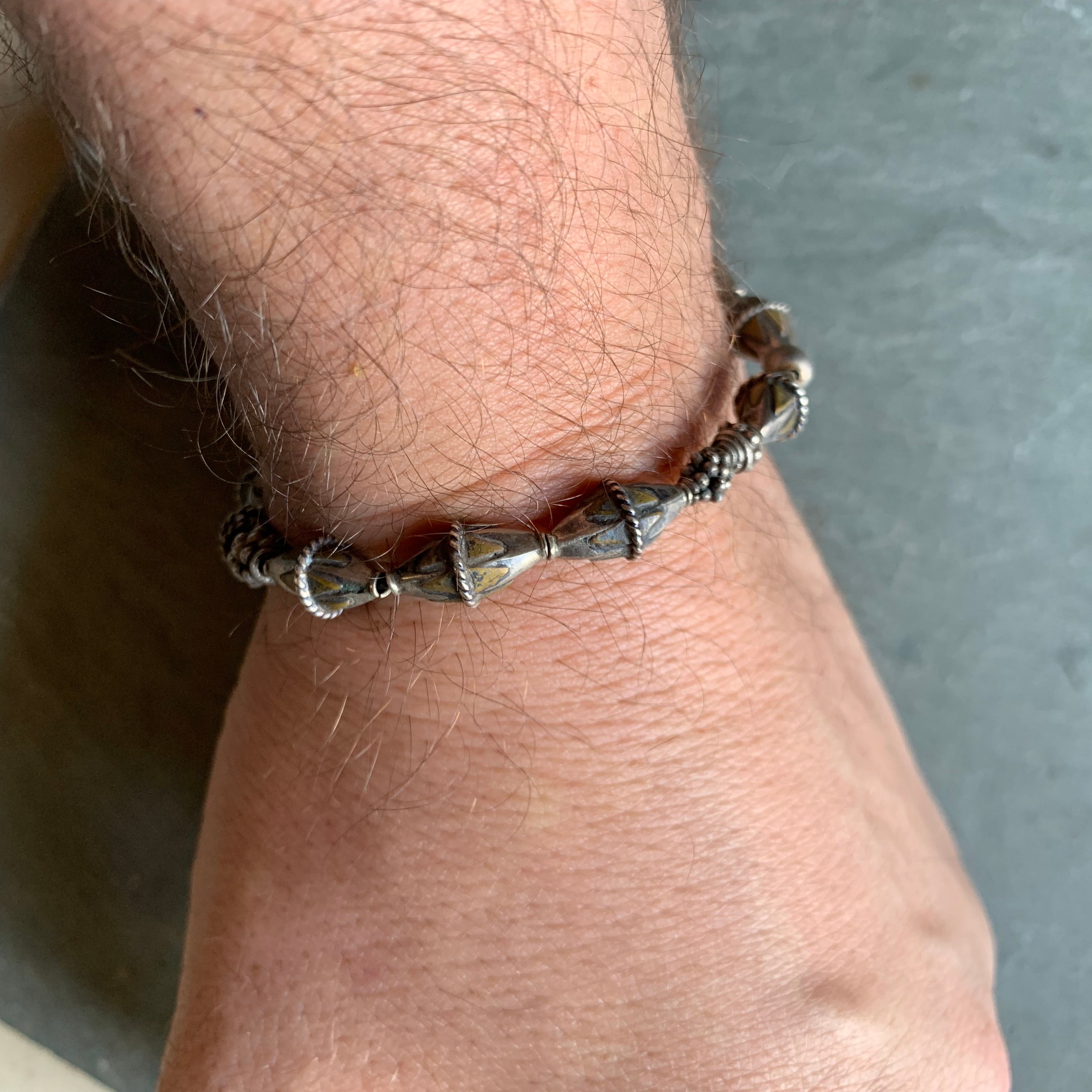 Vintage Diamond Shaped Silver Tone Beaded Bracelet - Made in India