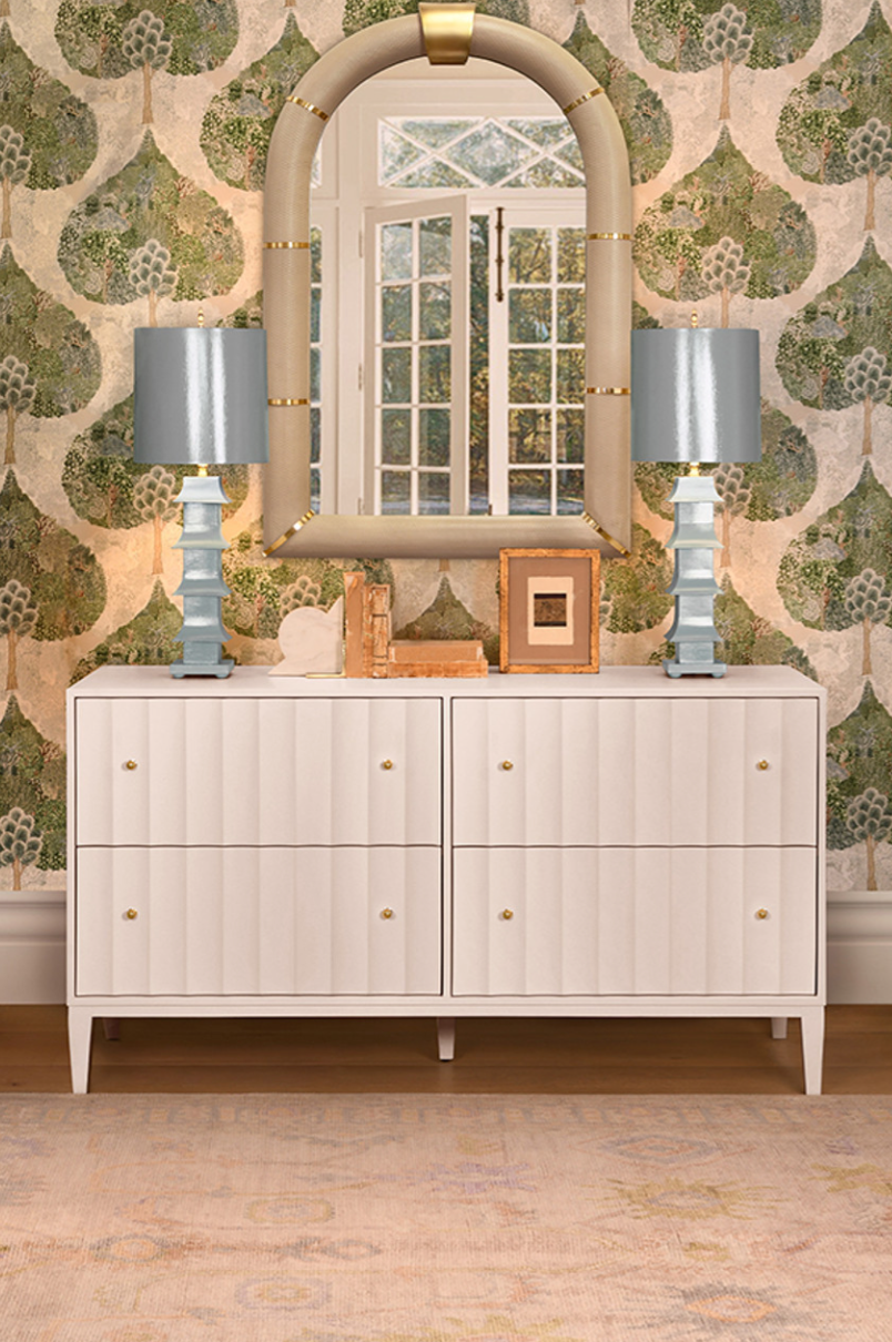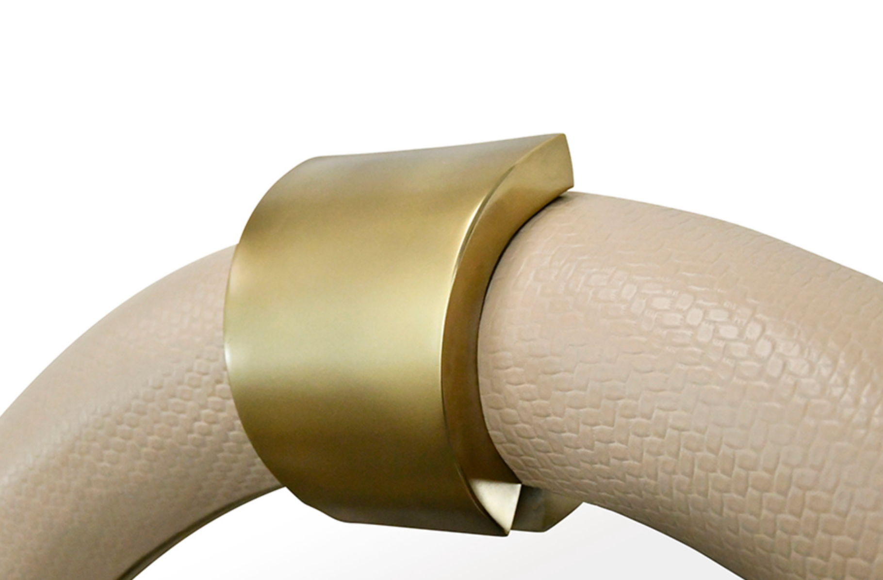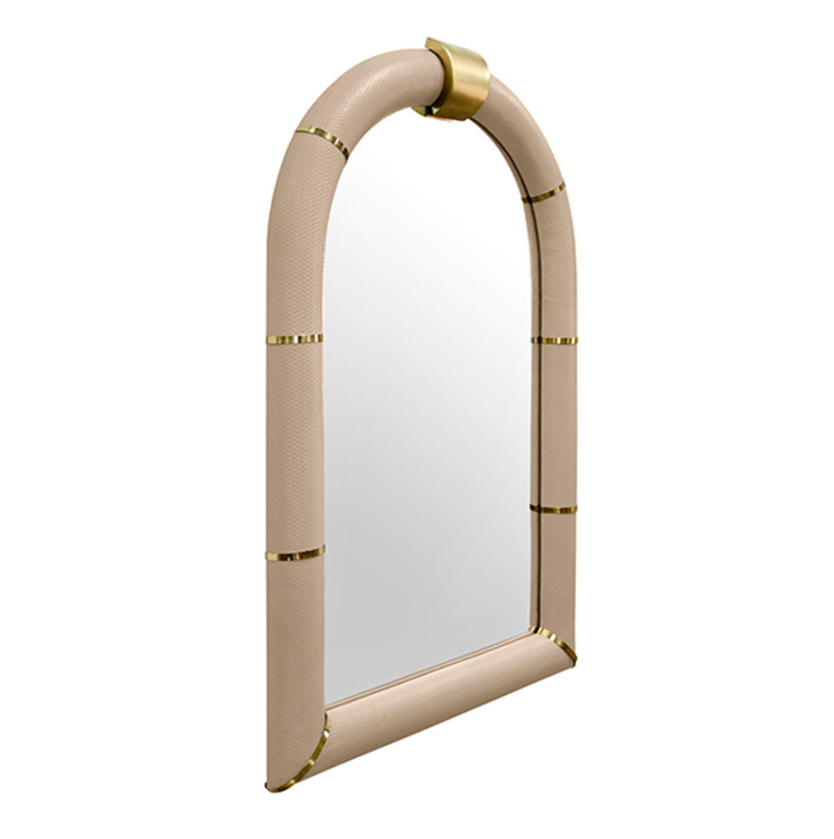 Bowie Arched Faux Ivory Textured Leather Mirror with Antique Brass Details