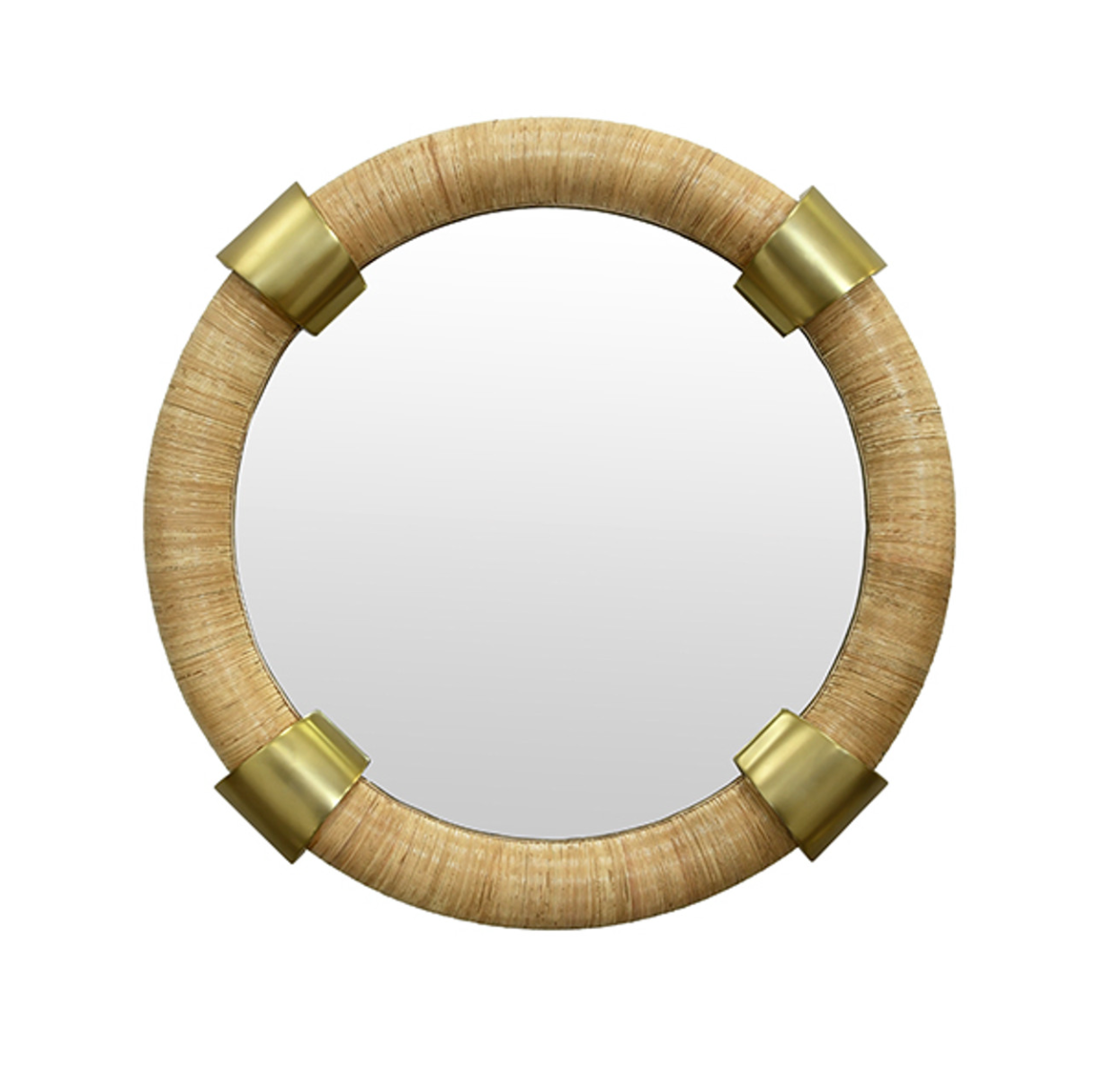 Saylor Round Wrapped Rattan and Brass Wall Mirror