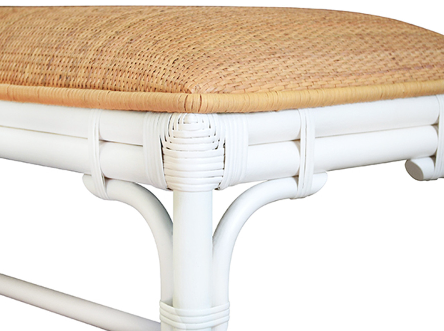 Asha Natural Rattan Cushion Top Bench with White Painted Rattan Base