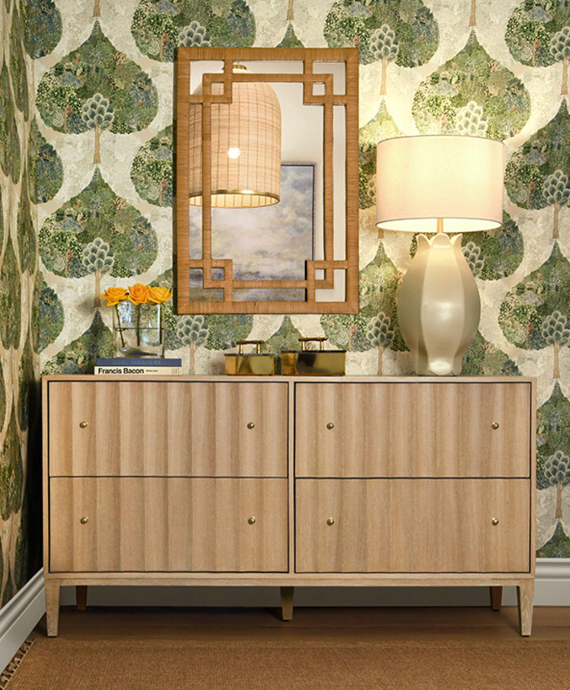 Geneva Natural Rattan Framed Wall Mirror with Greek Key Design