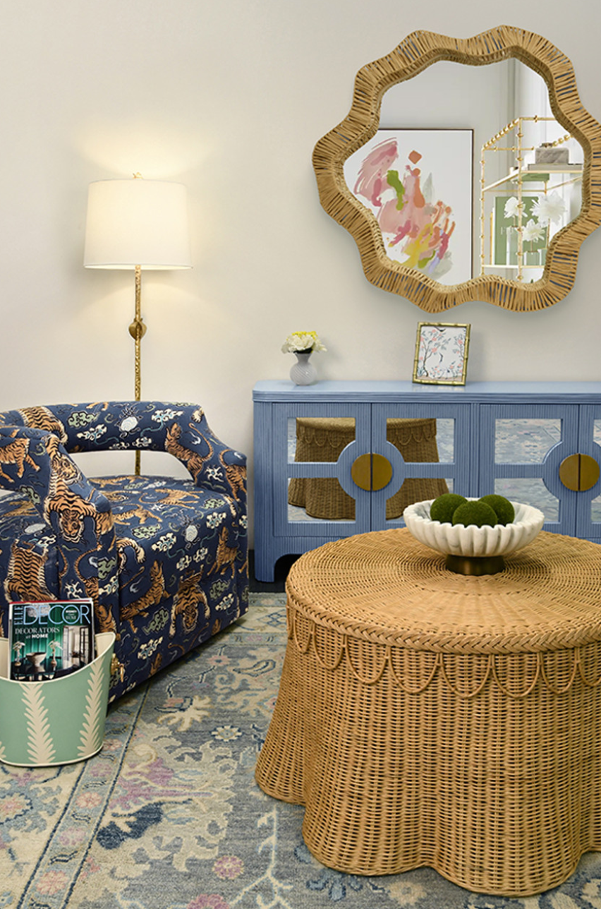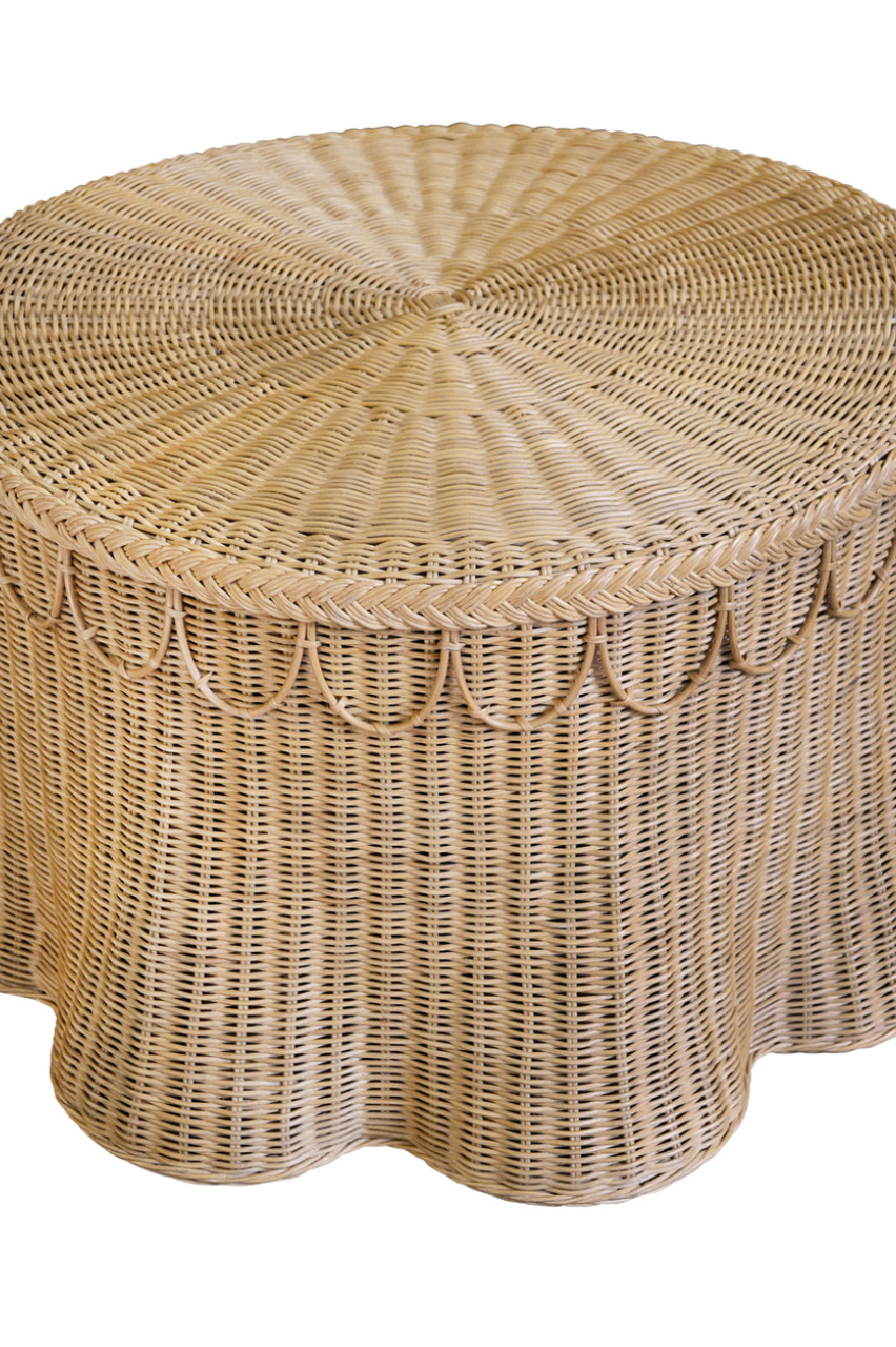 Giada Natural Woven Rattan Round Coffee Table with Scalloped Skirt