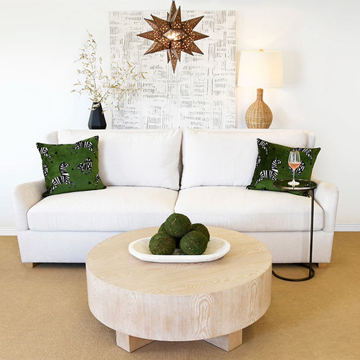 Kaleb Plain Weave Sofa w/Cerused Oak Feet - Ivory